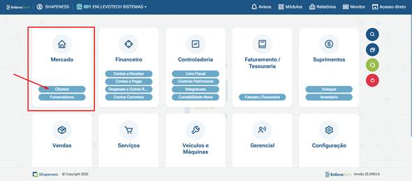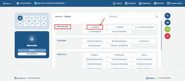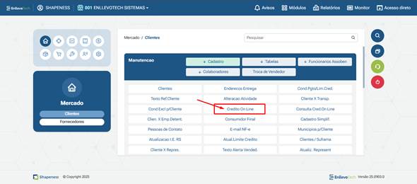 Mercado > Clientes > Manutenção > Cadastro > Credito On line.