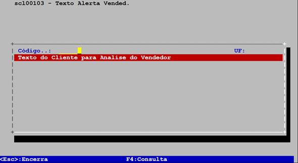 Mercado > Clientes > Manutencao > Cadastro > Texto Alerta Vended.(scl00103)