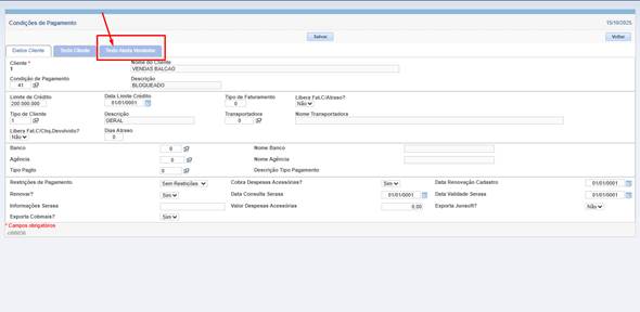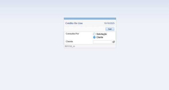 Credito On line > Selecione: Cliente, digite o numero do cliente:
