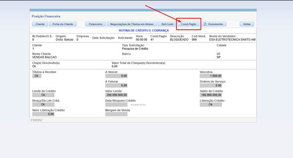 Passo 2. Dentro do programa Credito On line, localize e acesse a opção > Cond.Pagto.