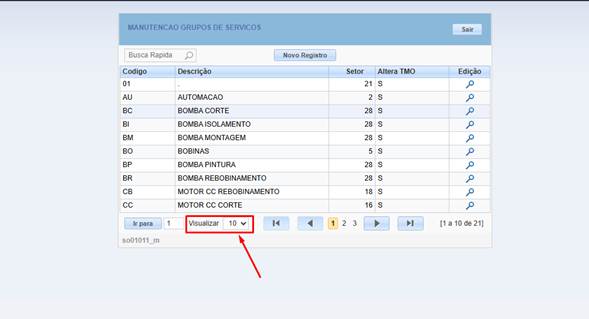 A interface do programa: Grupo Serv.TMO (código: sof00011) foi totalmente redesenhada. As funcionalidades permanecem as mesmas, alterando apenas a forma de interação com os campos e pesquisa.