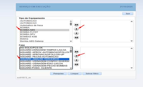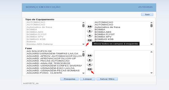 Para selecionar todas as opções de uma única vez, basta clicar no ícone representado por duas setas apontando para a direita: