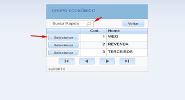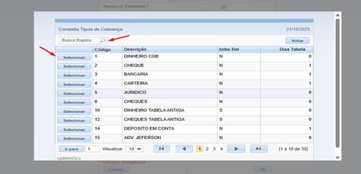 - Ao clicar na lupa, será exibida a tela de "Lista de Consulta".