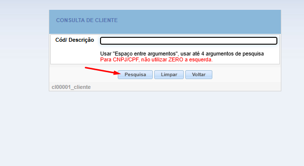 Para visualizar a lista completa de clientes, deixe o campo de pesquisa vazio e clique em "Pesquisa".