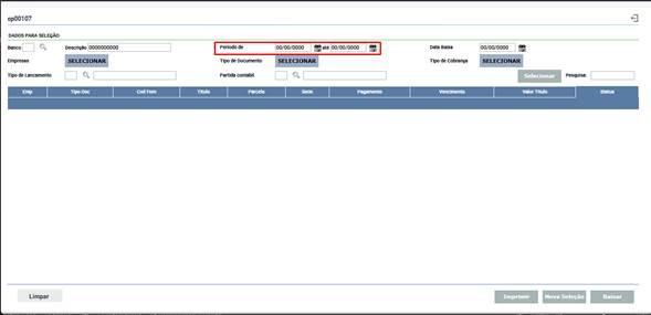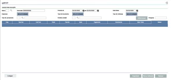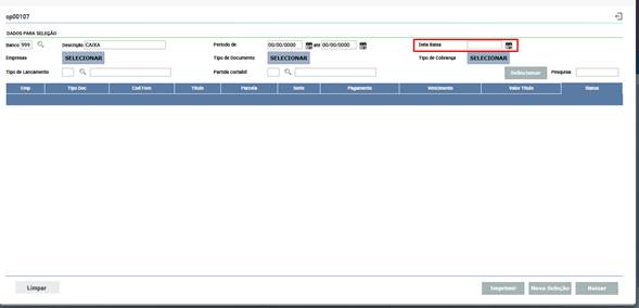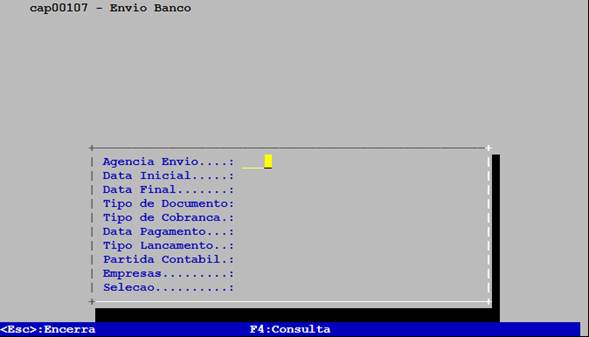 A interface do programa: Envio Banco (código: cap00107 ) foi totalmente redesenhada. As funcionalidades permanecem as mesmas, alterando apenas a forma de interação com os campos e botões.