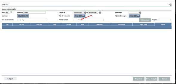 Para pesquisar Partida Contabil, clique no ícone de lupa (?) localizado à direita do campo.