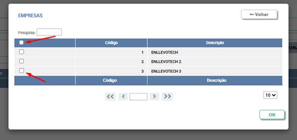 - Confirmar: Após finalizar a seleção, clique no botão "OK" (na cor Verde) no canto inferior direito da tela.