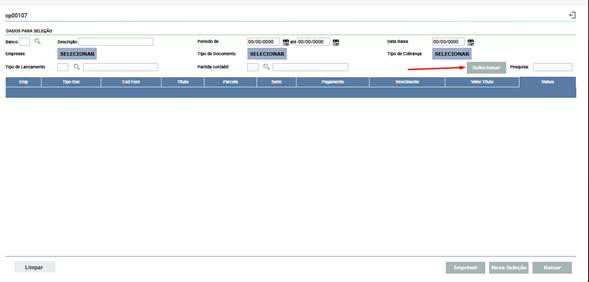 - Acessar a Lista: Clique no botão "Selecionar". Uma nova tela se abrirá, exibindo a lista de Tipos de Cobrança.