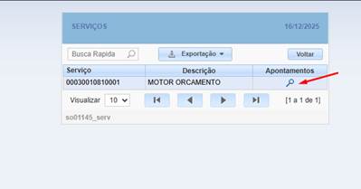 Ao pesquisar a OS irá aparecer o serviço com o número e a descrição,