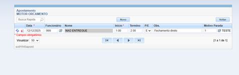 A interface do programa: Apontamento (código: sof00045) foi totalmente redesenhada. As funcionalidades permanecem as mesmas, alterando apenas a forma de interação com os campos e botões.