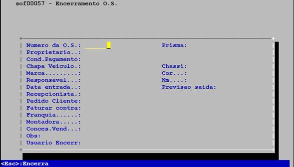 A interface do programa: Encerramento O.S (código: sof00057) foi totalmente redesenhada. As funcionalidades permanecem as mesmas, alterando apenas a forma de interação com os campos e botões.