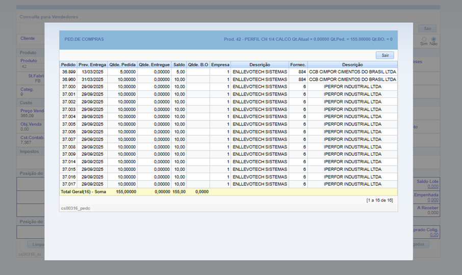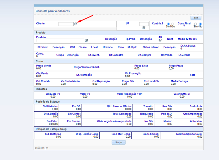 Vendas > Vendas Balcão > Vendas > Consulta para Vendas (ces00316)