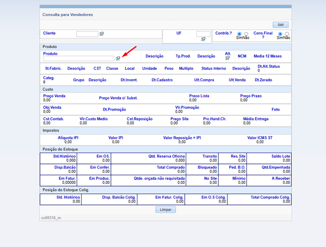 A interface do programa: Consultas Para Vendedores (código: ces00316 ) foi totalmente redesenhada. As funcionalidades permanecem as mesmas, alterando apenas a forma de interação com os campos e botões.
