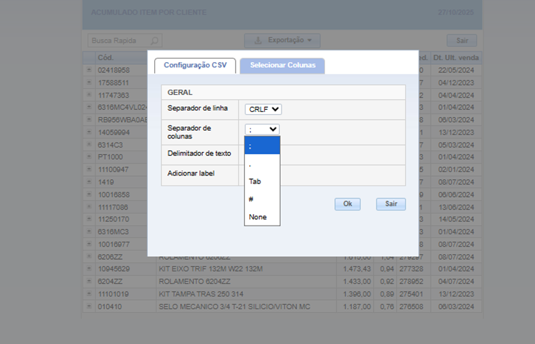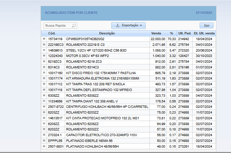 É possível clicando no código do cliente/Fornecedor, ver acumulado item por cliente:
