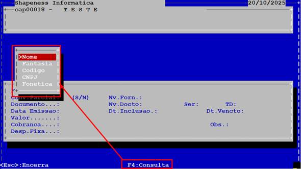 Na antiga Interface para consultar nome,Fantasia,Codigo,CNPJ,CPF,Fonet.Cliente e Fonet.Cidade, era necessário pressionar a tecla de atalho F4:
