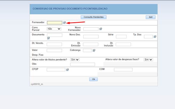 Financeiro > Contas a Pagar > Movimentacoes > Conv.Prov.p/Docto (cap00018)