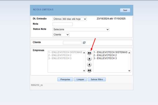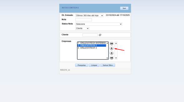 Caso deseje incluir todas as empresas, acione o botão com o ícone de dois triângulos apontando para a direita.